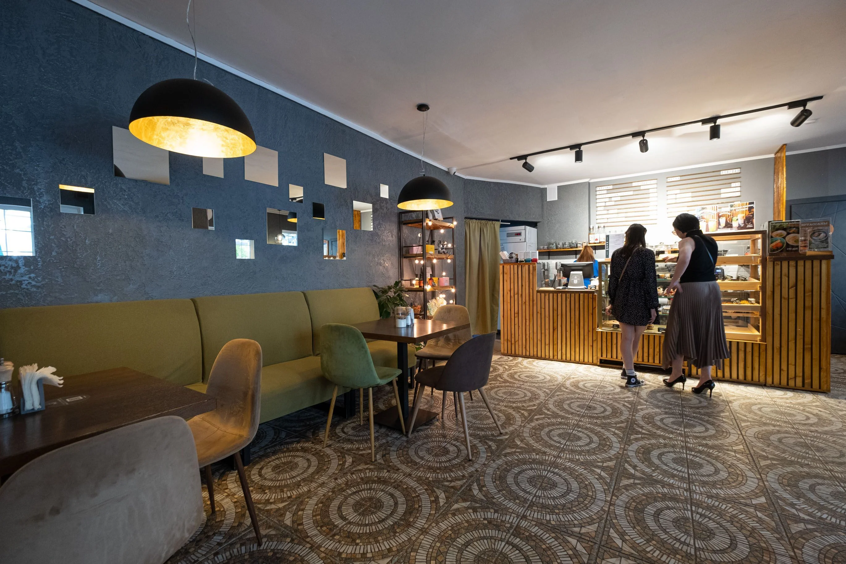 На завтрак рекомендую взять скрембл с тунцом и шпинатом — он подаётся в свежеиспечённом круассане , или сырники на кремовой подушке с сезонными ягодами. Если заглянете сюда на обед, попробуйте крем-суп шпинатный или холодный свекольник с яйцом. «Поке/паста» — раздел, который пользуется особенной популярностью у молодежи, и здесь особенно хорош «Поке с креветкой». Из традиционных горячих блюд мне понравились пельмени с мясом ручной лепки и вареники с картофелем. Десертами хозяйка кофейни занимается сама — пробуйте «Павлову» и «Медовик», который Татьяна довела до совершенства. Большое внимание, конечно, здесь уделяют кофейному зерну и качеству кофе, не зря это заведение признают лучшей кофейней в городе.